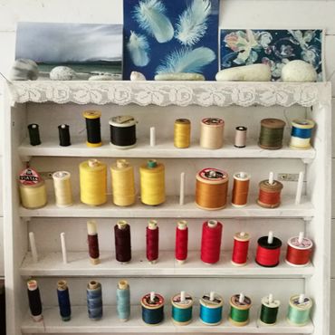From a studio that my husband built for me, overlooking our beautiful garden, I continue to make a wide range of textile creations, with fabric, embroidery, items from nature, hand dyeing, and felting, especially with locally sourced wool. I enjoy working with wool with all its wonderful endless possibilities